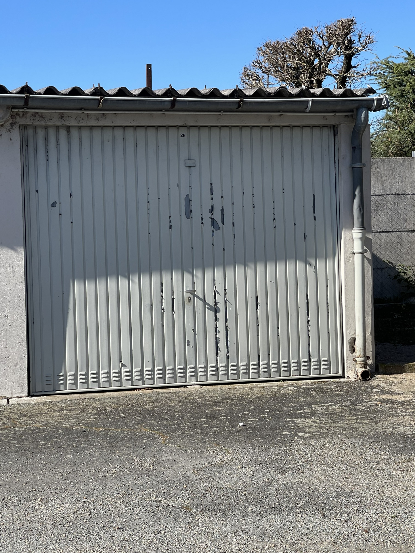 A quelques minutes à pied de l'hôpital, garage de 15 m2, porte basculante métalique et sol ciment. Idéal pour véhicule ou moto.